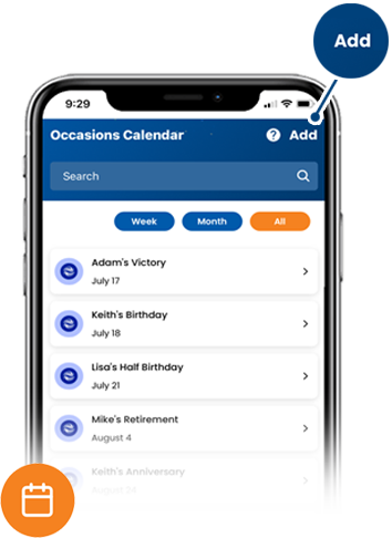 Add the special people in your life to our Occasions Calendar and never forget to celebrate an important life event.